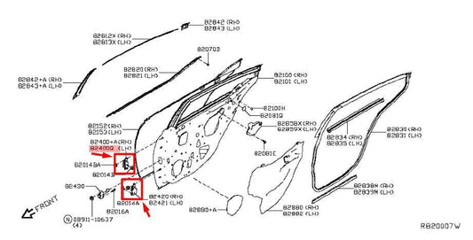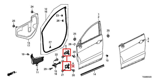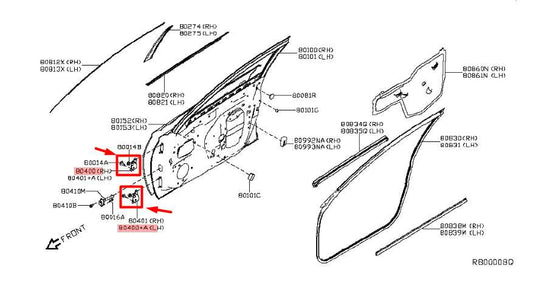 2014-2017 Infiniti QX50 Front Right Door Hinge Upper and Lower Pair 80400-JK00A